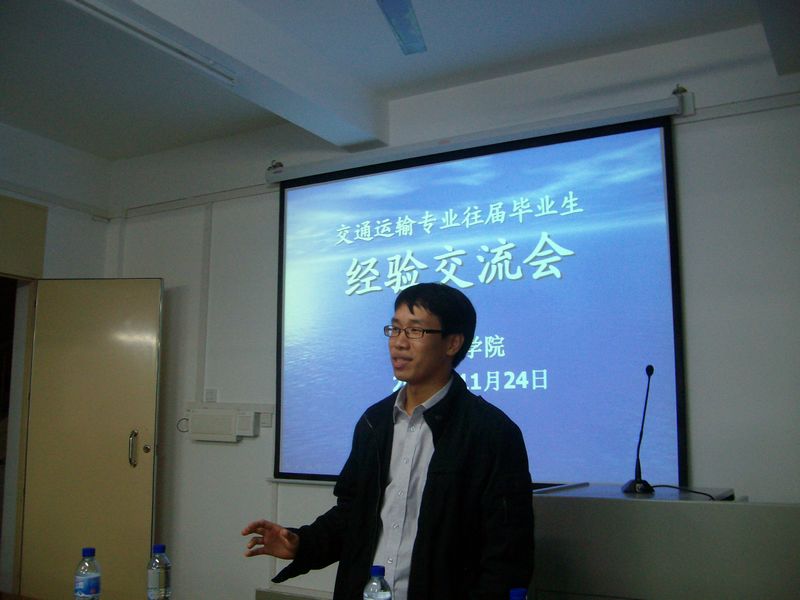 11月24号晚上,航海公司交通运输专业往届毕业生回校给08级交通运输专业同学作经验交流会。交流会在霞山校区教学楼302课室举行,其时交通运输08级同学正在湛江港集团进行为期两个星期的实习。航海公司航海系主任范少勇副教授、辅导员李明焜老师也应邀出席。