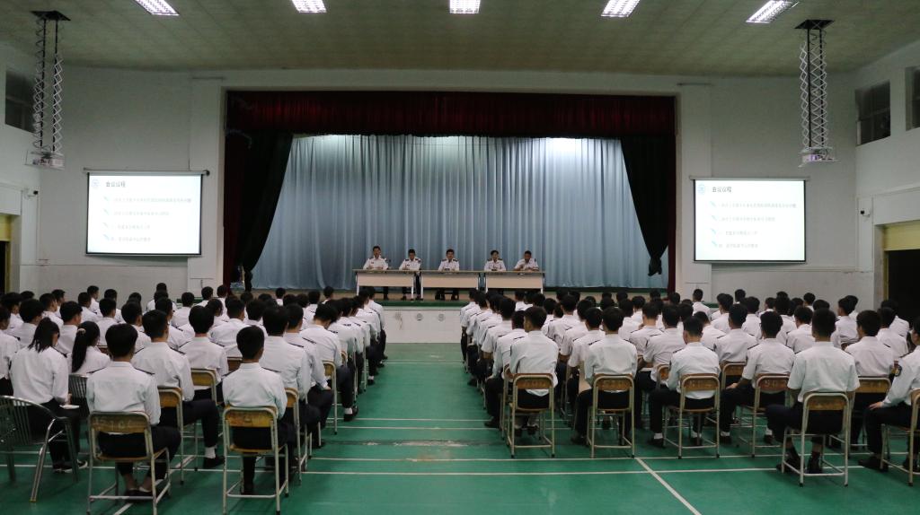 会上,江涛讲评了上学期各中队的整体情况,充分肯定了自管会、中队、区队各级员工干部的工作成绩,各级半军管员工干部履职尽责,带领同学积极参加军事训练,生活作风扎实,为同学们树立了榜样。刘抒睿布置了今年公司参加全国航海技能大比武、组建公司国旗班(湛江市军地人才联合培养项目)等重点工作。
