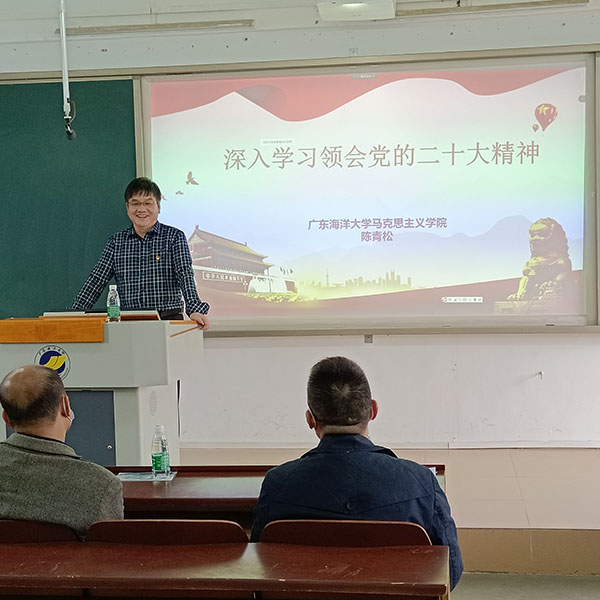 12月1日下午,beat365在海滨校区教学楼401教室,召开学习贯彻党的二十大精神宣讲报告会。公司党委宣讲团副团长、马克思主义公司党委书记陈青松为大会做报告。报告会由公司党委书记张懿主持,公司全体教职工和员工党员150余人采用线上线下的形式聆听了报告。