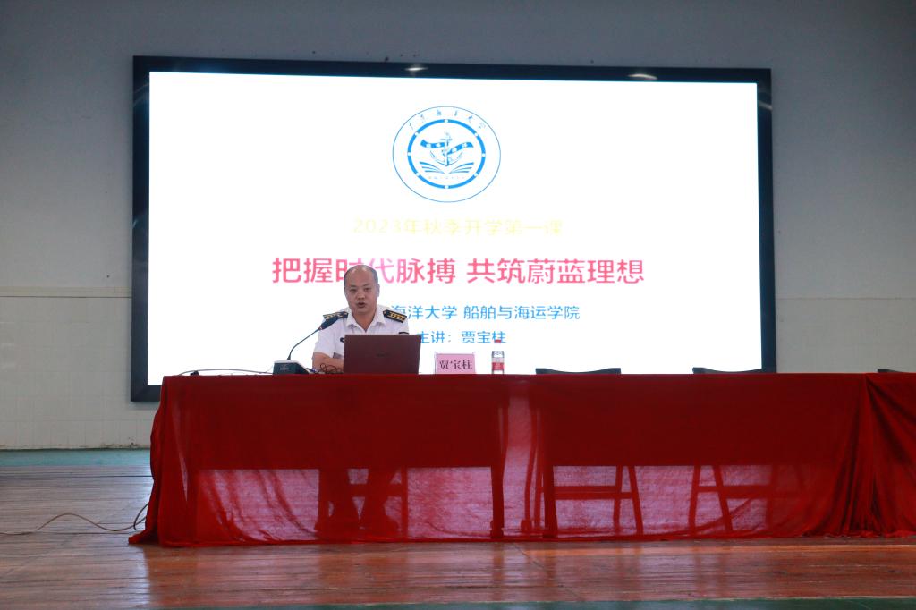新生见面会后,张懿、贾宝柱、齐昊、李荣辉围绕“大学是什么”“为什么读大学”等分别以《做有理想、守纪律、有作为的新时代老员工》《把握时代脉搏 共筑蔚蓝理想》《崇德尚学,励志笃行,勇做堪当大任的时代新人》《夯实专业基础,共筑海洋强国梦》为主题给新生开展入学教育“思政第一课”。