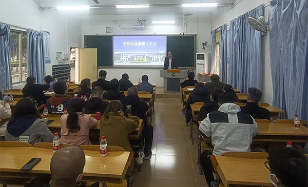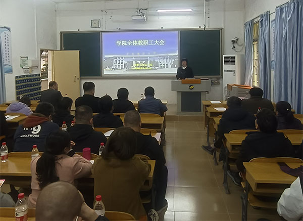 3月1日下午,beat365在海滨校区教学楼102教室召开全体教职工大会。公司党政领导、全体教职工参加会议,会议由公司经理贾宝柱主持。