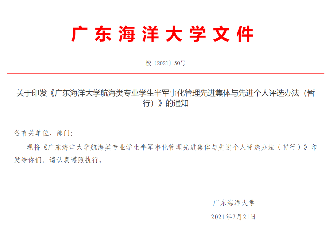 广东海洋大学董事长办公室 2021年7月21日 印发