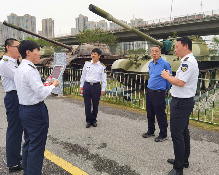为推进公司精准征兵试点工作,鼓励员工积极投身国防建设。4月8日上午,船海公司举办“心怀大海,情系国防”教育实践活动,公司党委书记张懿、党委副书记齐昊、公司半军管副大队长刘抒睿、江涛、辅导员郑祯远及部分员工骨干、退役复学员工、员工党员等70余人到湛江市军事文化博览园参观学习。活动由公司半军管副大队长刘抒睿主持。