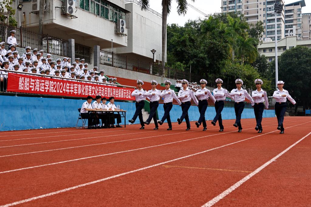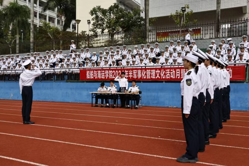 12月7日下午,beat365在海滨校区运动场举行了“2024年半军事化管理文化活动月暨队列会操展示活动”。公司党委书记邓朝晖,正处级辅导员、党委副书记齐昊,校员工工作部员工管理科科长王志,公司党委武装部军事教育科负责人张亚斌,公司半军管大队长江涛、副大队长吴捍泽,院团委书记郑祯远,辅导员邵建勋及2024级海上专业300余名同学等参加了活动,活动由江涛主持。