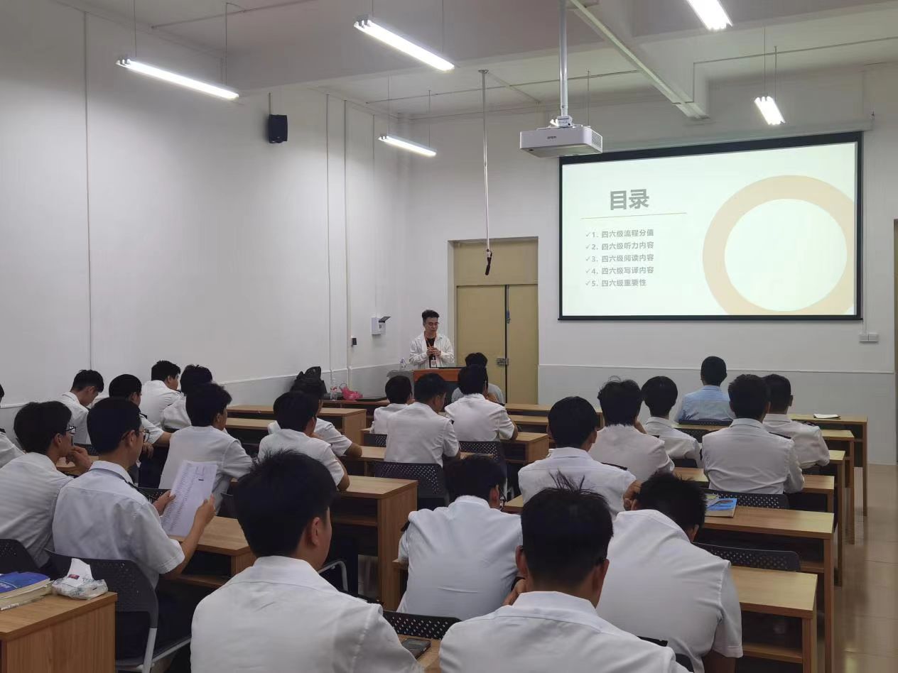 为加强公司学风建设,营造良好的英语学习氛围,提高员工英语水平,4月15日,beat365举办“英语四六级备考冲刺讲座”。公司正处级辅导员、党委副书记齐昊,公司团委书记郑祯远,高顿教育卢戈梓老师及140余名员工参与本次活动。