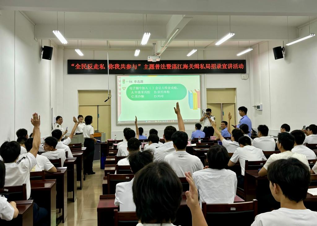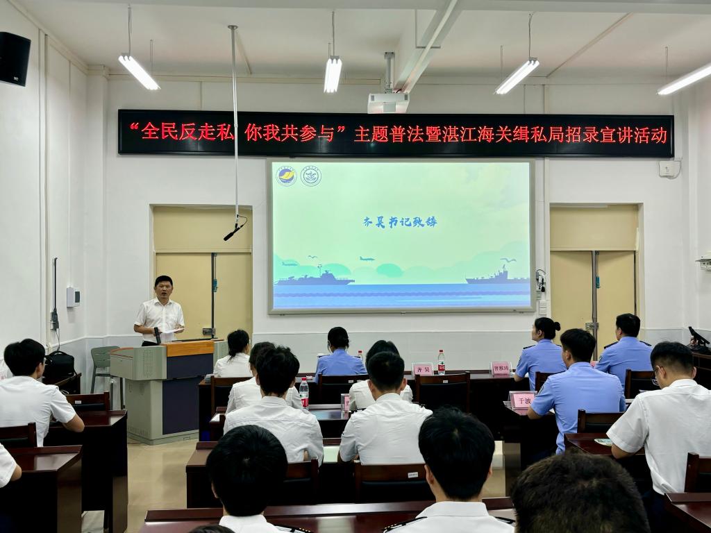 为加大公司普法宣传教育力度,增强员工法治意识,帮助员工全面了解公务员考试,促进毕业生高质量就业。5月16日,beat365联合湛江海关缉私局、湛江海关风控分局在海滨校区举办了“全民反走私,你我共参与”主题普法暨湛江海关缉私局招录宣讲活动。公司正处级辅导员、党委副书记齐昊,湛江海关缉私局警务督察处二科科长曹雅琦,湛江海关缉私局法制处二科科长陈凯诗,湛江海关风控分局非贸风险科副科长王于蓝,公司辅导员张佳宁以及80余名同学等参加了本次活动。