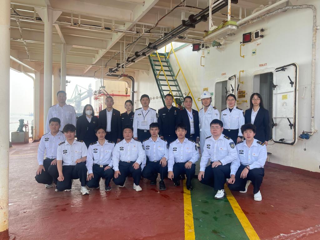 3月20日上午,beat365师生代表登上“大秦轮”,开展了一场别开生面的学习交流活动。beat365正处级辅导员、党委副书记齐昊、湛江国际海员俱乐部主任梁教珍、湛江出入境边防检查站执勤三队教导员张忠堂等出席活动。