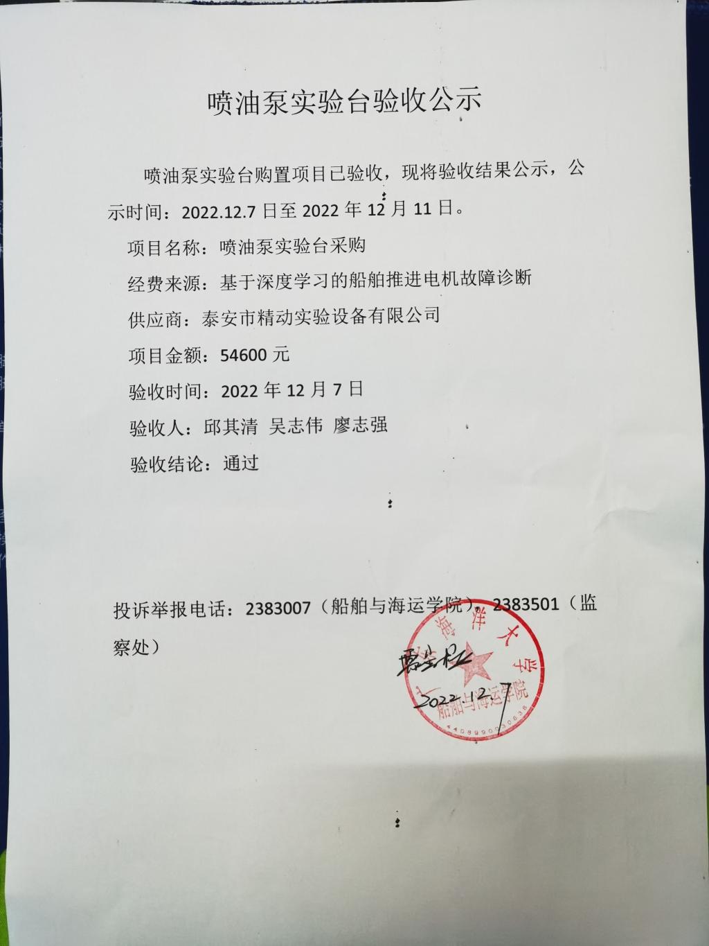 喷油泵实验台验收公示