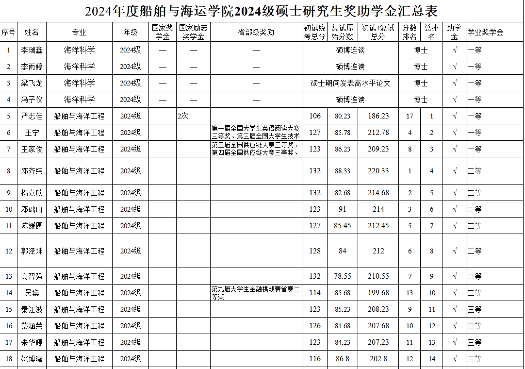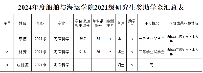 根据《广东省教育厅关于做好2024年秋季学期员工资助工作的通知》及《公司关于开展2024年研究生国家奖学金、学业奖学金和助学金评审工作的通知》精神,按照《beat365官方网站全日制研究生奖助学金实施办法》,经个人申请、公司评审小组认真审核及严格评选,拟确定获得研究生助学金、学业奖学金人员名单。其中,2021级海洋科学专业皮桂源同学因休学补发半年助学金,其余硕士研究生均不分等级全部获得助学金。现将评审名单进行公示(详见附表)。