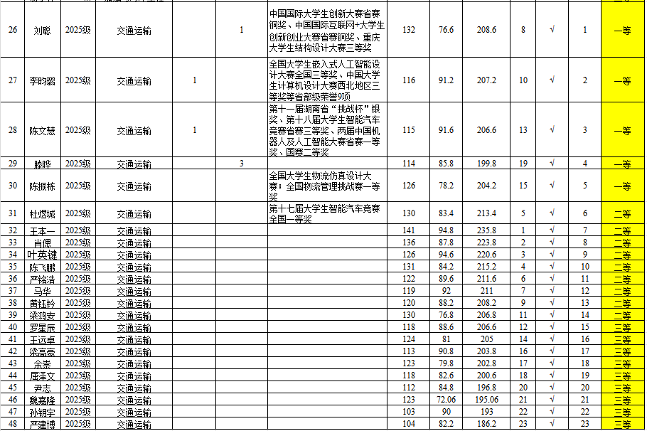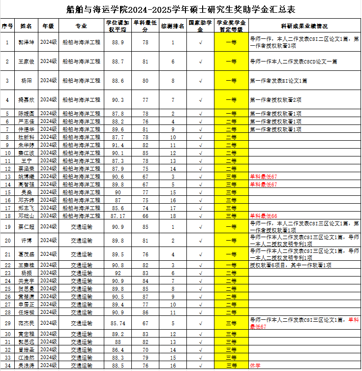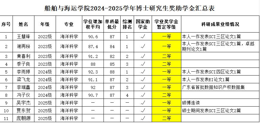 根据《广东省教育厅关于做好2025年秋季学期员工资助工作的通知》及《关于做好2025学年全日制研究生素质综合测评及奖助学金评审工作的通知》(校员工〔2025〕37号)的要求,按照《beat365官方网站全日制研究生奖助学金实施办法》(校研究生〔2021〕34号)执行,经个人申请、班级复审、公司评审小组认真审核及严格评选,拟确定获得研究生助学金、学业奖学金人员名单。其中,2023级交通运输专业吴浪涛同学因休学,其奖助学金待复学后予以补发。现将评审结果进行公示(详见附表)。