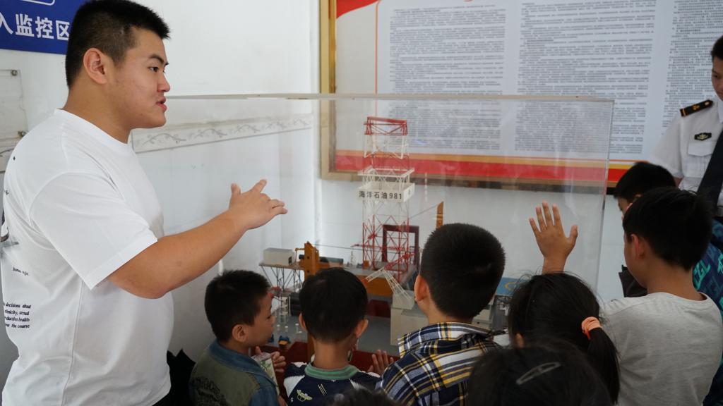 活动首站,员工们来到了海洋石油981平台展区。这座海上钻井平台的雄伟身姿,不仅展示了我国在海洋石油开采技术上的重大突破,更是科技进步与人类探索精神的象征。志愿者们通过生动的讲解,让孩子们深刻理解了981平台背后的智慧与汗水,激发了他们对科学探索的热情。