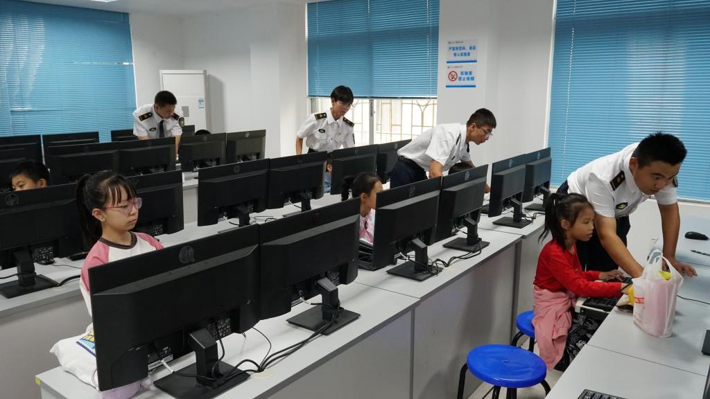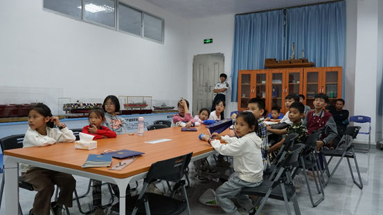 在船模陈列区,各式各样的船舶模型吸引了孩子们的目光。他们围绕在模型旁,仔细观察、热烈讨论,每一个细节都激发了他们对航海科技的浓厚兴趣。